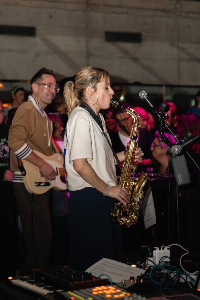 Als Kalabrese und das Rumpelorchester die ersten Töne anschlugen, die ersten Rhythmen und selbst komponierten Stücke spielten, eröffnete sich ein Spektakel der ganz eigenen Art. Es war Gänsehaut im Raum zu spüren. Die Leute tanzten, die Band gab alles zum Besten.